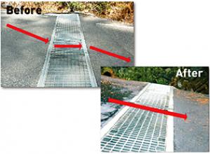 二次製品の側溝や既設側溝に排水ドレン金具を取り付けることで舗装の表面雨水を側溝へ排水する