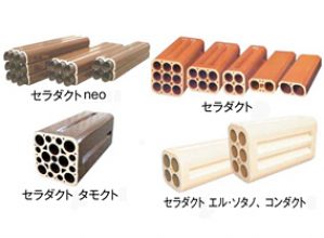 ボルト締め多孔陶管の同社ベストセラー商品。「セラダクト」シリーズでは、トンネル専用「neo(ネオ)」、空港では高強度の「エルソタノ」、電線共同溝には「タモクト」も展開中。 月平均生産量:650t