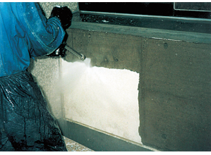 劣化した既存塗膜面に安全な生分解性塗膜軟化剤を塗布し、塗膜を軟化させ高圧温水を噴射することにより剥離を行う工法。