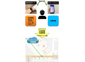 現場作業員の生体情報と位置情報をWEB上で閲覧および管理するシステム。