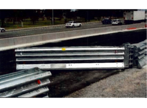 米国連邦道路局NCHRP350認証機。771.6kJ(2t車100km/h)の衝突に20g、12m/秒以下で対応。オフセット衝突、有角度衝突に対応。自重670kgで軽量。付け替え容易。