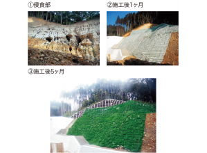 大型土のう袋に植生シートを装着して、緑化機能を付加した技術