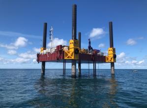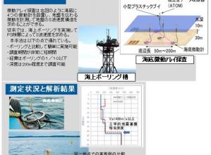 洋上の海底地盤について、1)地盤の強度、2)液状化判定、3)圧密評価、4)地盤のせん断波速度等の情報を取得する調査技術。1)~3)は主にCPTの技術を用い、4)は孔内で振動を発生させ、海底面で振...