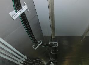 落下防止機能を持ち、アンカーボルト一本で設置可能な通線ケーブル用保持具。