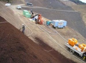 汚泥・木質廃材などを有効利用する法面吹付自然再生工法。添加剤(吹付助剤A・B)を使用することにより、地域で発生する有用廃棄物(汚泥・木質廃材など)の成分の違いに関係なく、安定した植生基盤を作るこ...