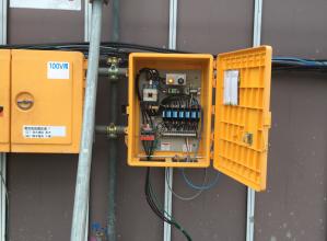 仮設分電盤の電源のON/OFFをPCやiPadから遠隔操作することで、朝晩のON/OFFに費やす時間を短縮できる。