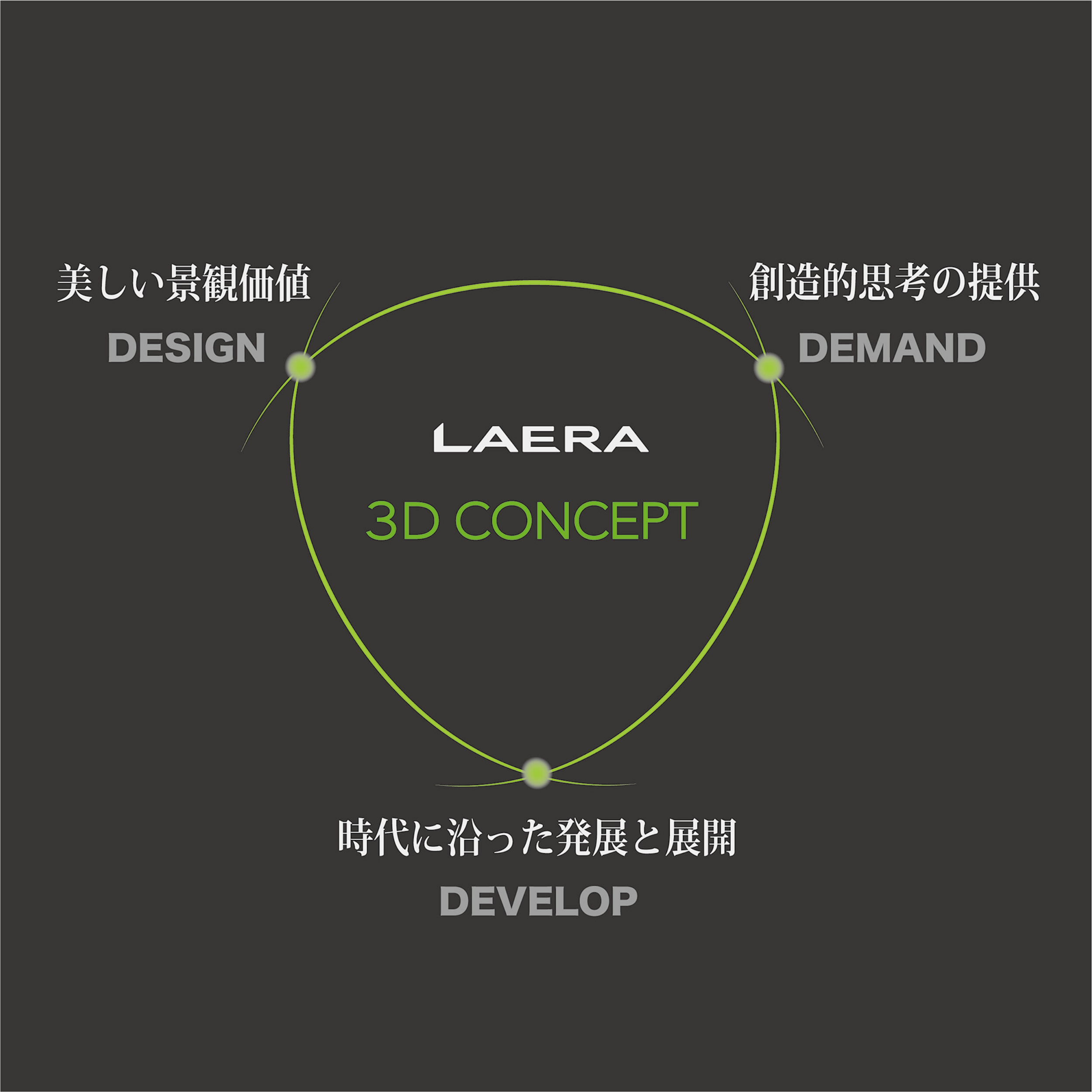 景観ブランドとして、お客様のニーズにお答えすると共に新たなカテゴリーへの挑戦と景観ニーズにお応え出来るよう景観と言えばLAERAを目指します。
