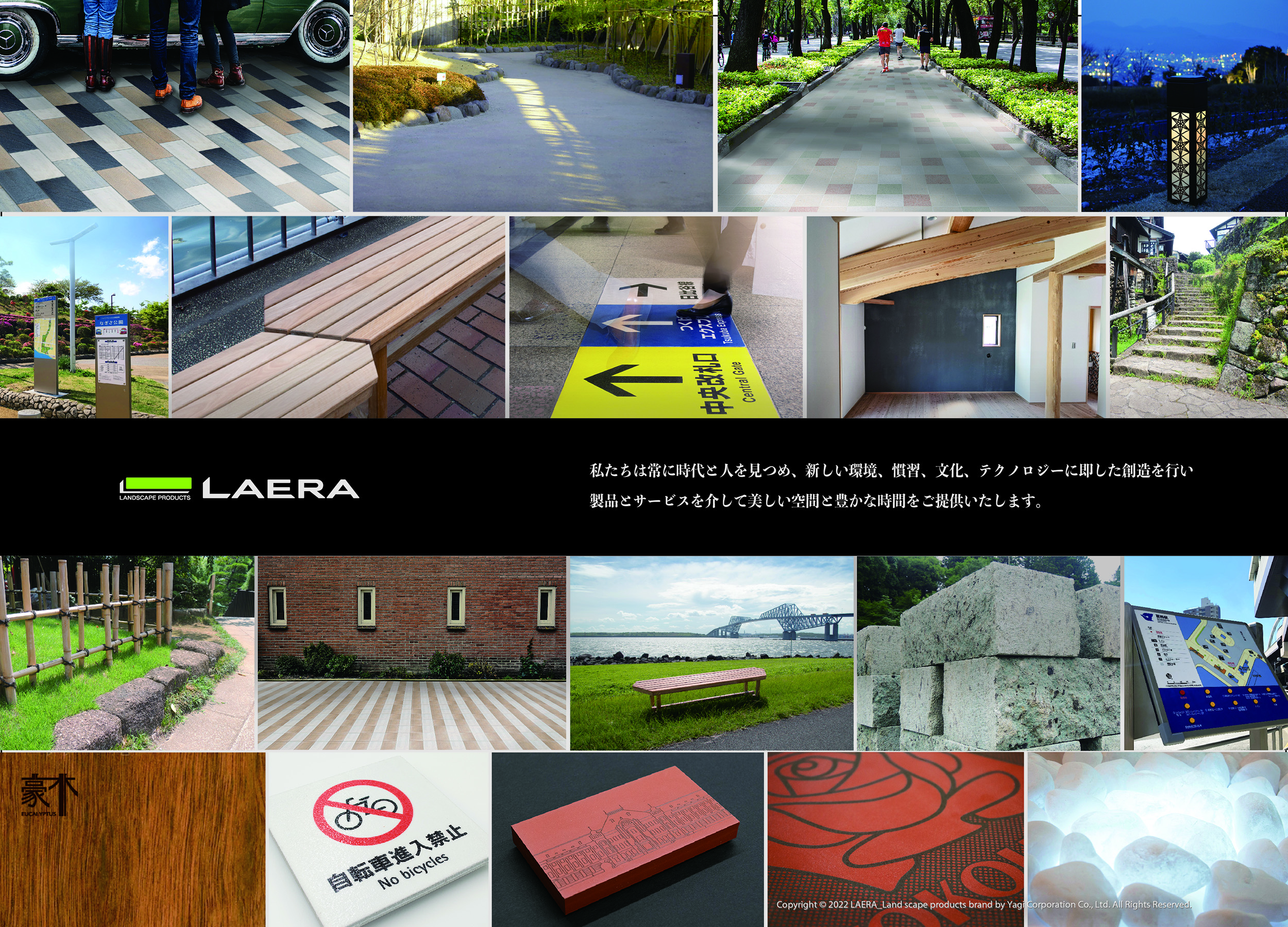 LAERAは、それぞれのシーンに合わせた提案と要望にお応えする製品作りとネットワークで新しい景観価値を生み出して参ります。