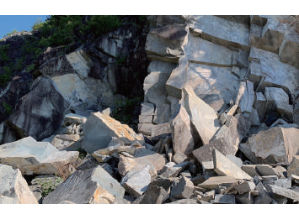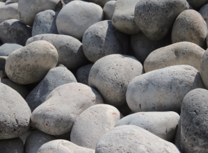 天然節理(柱状節理/板状節理)の岩盤層から得られる豊富なアイテムはその採取出来る表土層・中間層・深層で、違ったアイテムと色調を醸し出し巨石~砂利まで幅広く、絵画的なグレートーンが魅力。