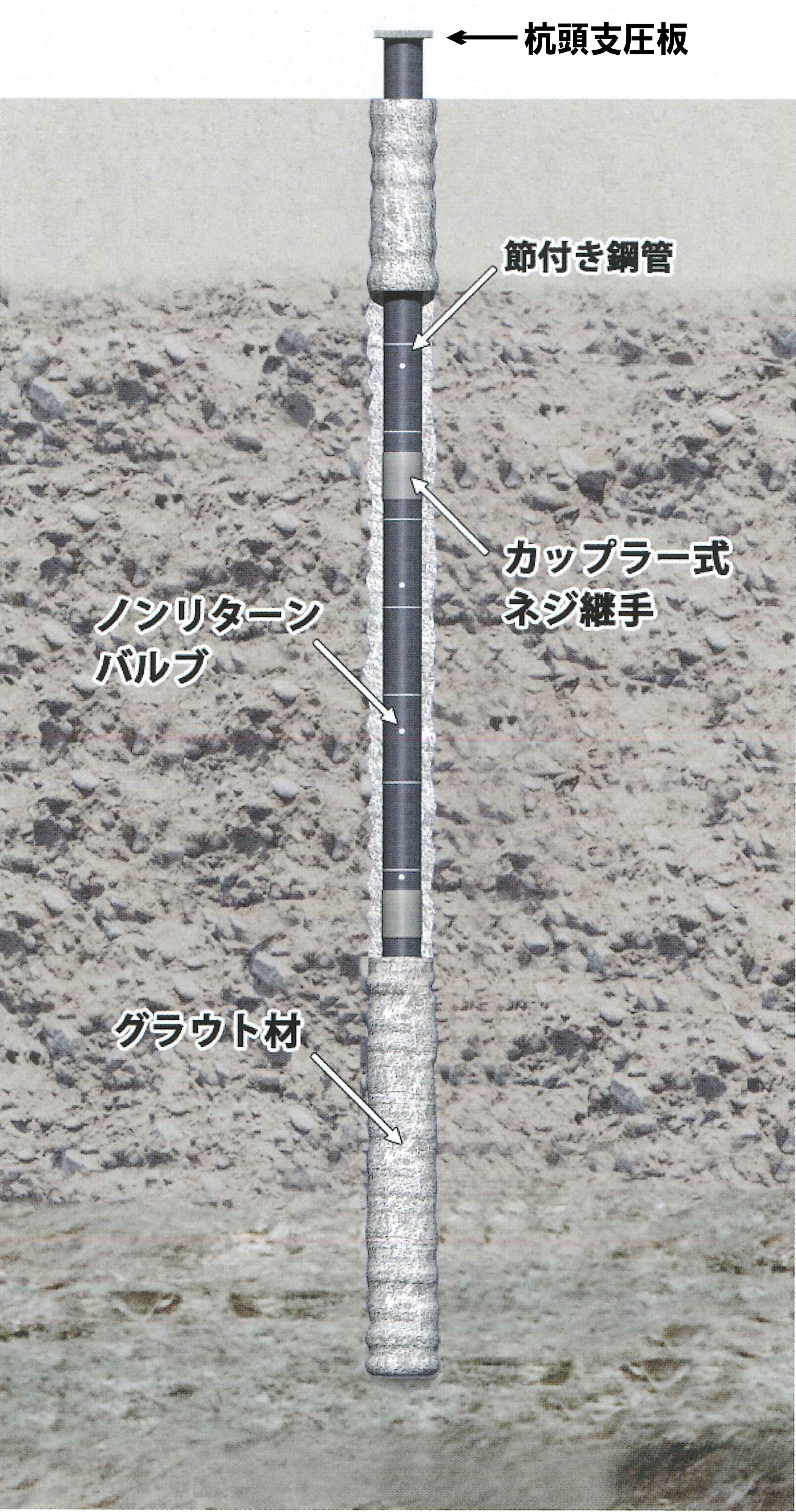 橋梁等の桁下空間の制約や近接構造物の影響を受けることなく、⾼張⼒鋼管を⽤いた機械式ねじ継⼿の⼩⼝径杭(径φ165.2/216.3/267.4)を打設することにより、構造物の⽀持⼒対策・既設構造物...