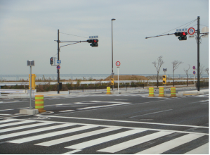 ポールクッションは、鋼管の『扁平化』と『曲げ(破断)』による衝突エネルギーの吸収能力を緩衝材と組み合わせることにより、吸収能力を大きく向上させた衝撃緩衝材である。