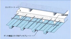 デッキプレートの表面にエンボスが施されており、コンクリートとデッキプレート双方の特長を効果的に...