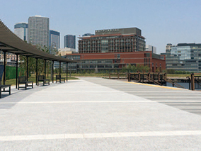 ・空隙構造で蓄熱低減。低熱機能を持つ透水製品。透水機能に優れたポーラス構造でできているため、蓄熱を低減する効果がある。