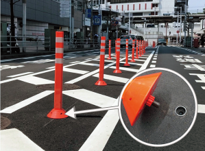 ラウンドアバウト(環状交差点)の安全対策商品であり、車両通行向きを誘導するための視線誘導標であ...