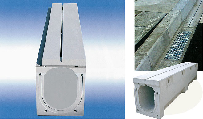 門型構造をした製品で、蓋受け部を曲面にすることにより騒音がしにくくなった側溝