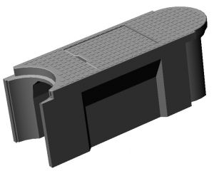 門型構造をした製品で、蓋受け部を曲面にすることにより騒音がしにくくなった側溝