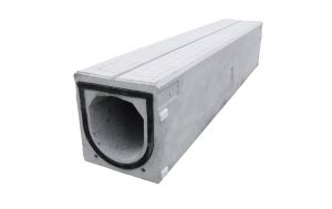 門型構造をした製品で、蓋受け部を曲面にすることにより騒音がしにくくなった側溝