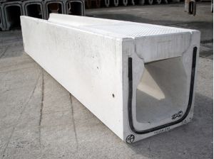 門型構造をした製品で、蓋受け部を曲面にすることにより騒音がしにくくなった側溝