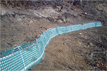 軽量かつ強靱な材質が作業の省力化を実現する、編柵工(しがら工)専用の菱目ネット。