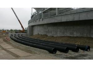 衝撃に強く、伸縮・可とう性があるので地盤のずれや地盤沈下に追従して屈曲し、被害を最小限に抑止する。