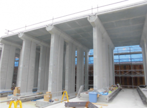 PC雨水貯溜槽アグアは柱、柱台、梁、中間壁、柱壁、コーナー壁、頂版スラブのプレキャスト7部材...