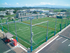 長い草丈の人工芝に砂と弾性材(ゴム)を充填したロングパイル人工芝である。ゴムをクッション材として使用しているので足腰にも負担が少なく、長時間の使用が可能な人工芝。