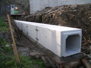 全国ボックスカルバート協会規格準拠製品。SCVⅡ型は、Ⅰ型のコンクリート設計基準強度を上げ、部材寸法を薄くして軽量化を図った形状。