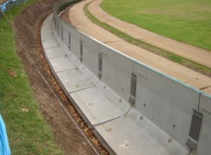 逆L型形状のため、用地幅並びに掘削量が最小限で済む。天端勾配可変(0~10%)で、法面形状や道...