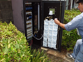 配電盤内部の結露を防止する乾燥剤。吸湿の際に一切電力を使用しない環境配慮型のエコ商品。最大70%吸湿。