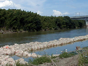 ・人手に頼る普通の土のう(2号土のう)に比べ施工が容易。経済的で作業効率が良い