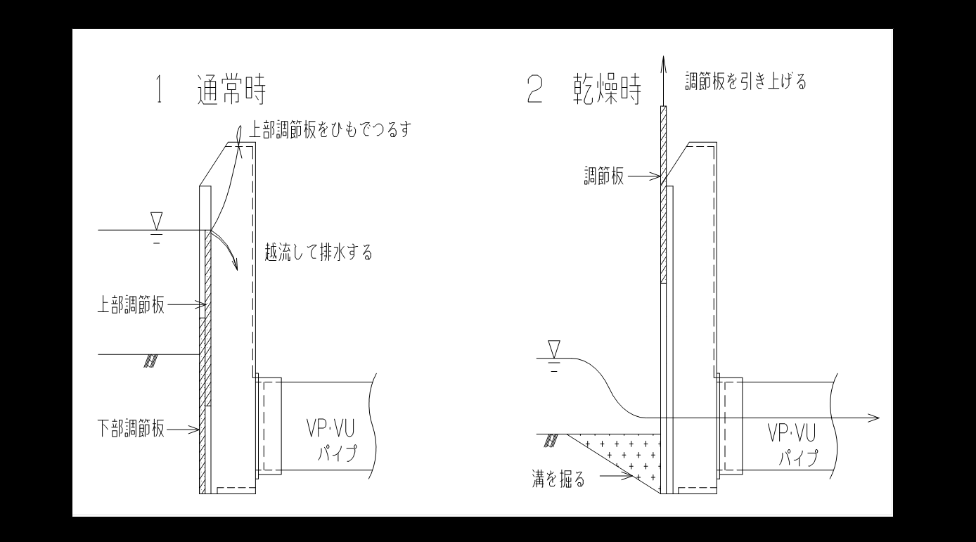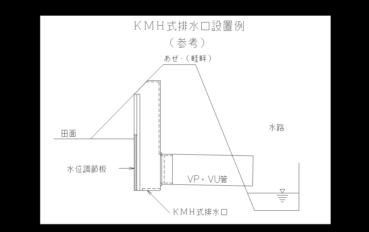 ・田んぼのあぜに設置して、水位調整板により水位調整。