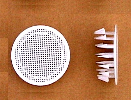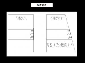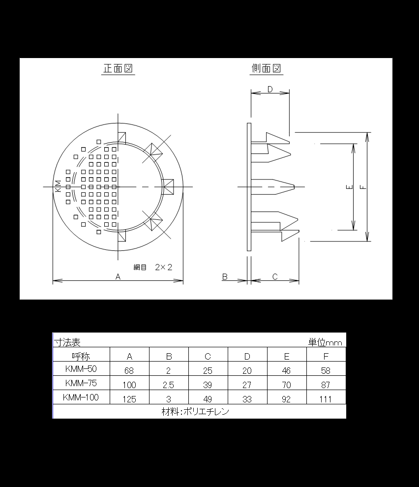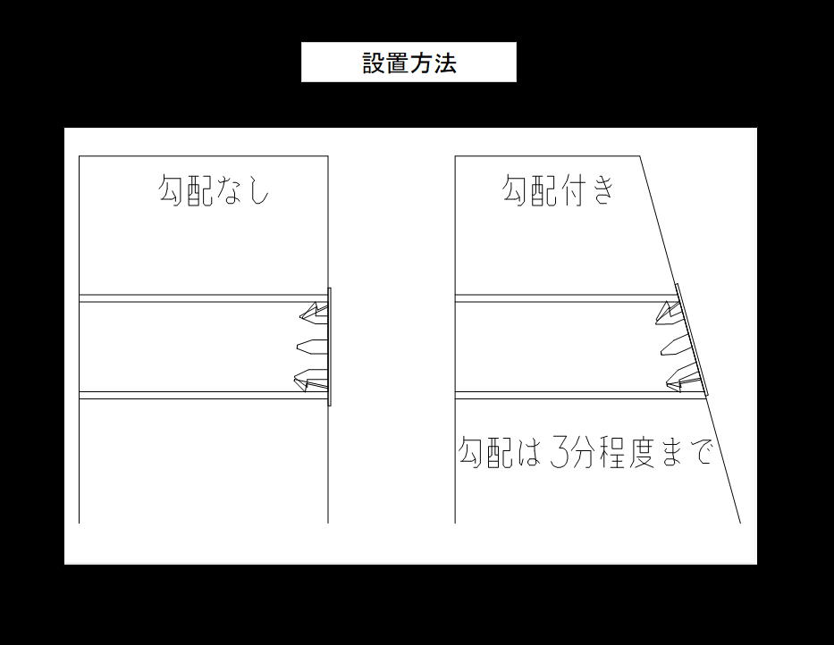 擁壁・水路等の水抜き管に本品を差込装着することで、地山側土砂のパイプ内流出防止をはかる。 なお、口径は塩ビ管規格でΦ50・Φ75・Φ100の3種類。 3分勾配程度にまで対応可能。