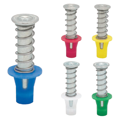 デッキ一般用インサート。ドリル等であけた穴に差込み、ハンマーで軽く打込むだけで施工できる。また、デッキの上下から色の確認ができる。