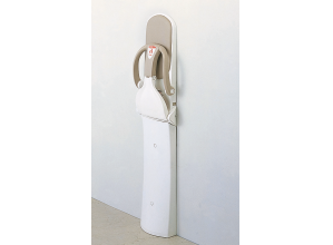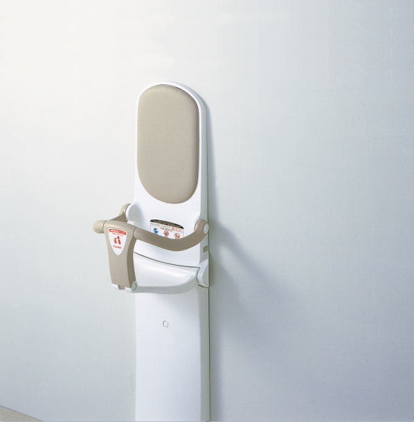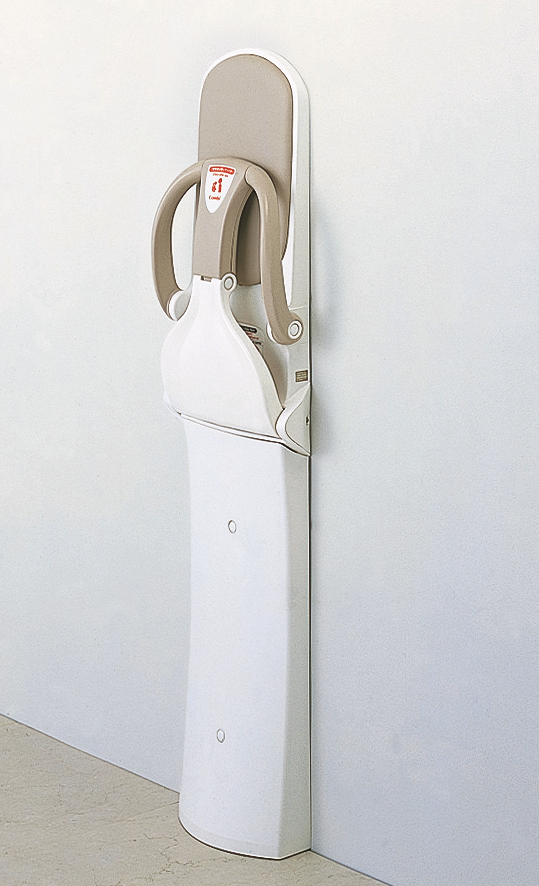 従来の横型おむつ交換台の使い勝手をそのままに、車いすの方にも使いやすいよう配慮したおむつ交換台。