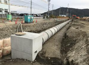 施工性:生コンを使用しないため、布設後直ぐに埋戻しが可能。