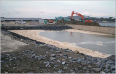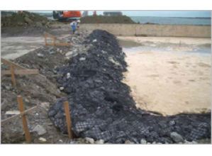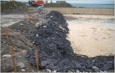 ・根固め工に必要な屈撓性があるため、底面変動への追従性がある。また、間詰め工に必要な空隙へのなじみも併せ持っている。