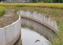 背抜き構造とし、軽量化した安価な水路。水路片側の土面が下がっている現場で対応できる土留めタイプ、水路の高さが左右でことなる現場で対応できる段差タイプ、底面に開孔した二面タイプ・魚巣ブロックを取付できる魚巣タイプがある。