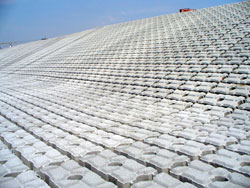 ポリエステル製不織布のフィルターシートに、コンクリート製ブロックを配置・固定した河川護岸用ブロ...