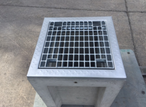 門型構造をした製品で、蓋受け部を曲面にすることにより騒音がしにくくなった側溝