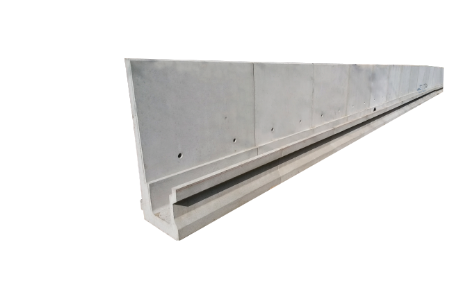 側溝と土留擁壁を一体化させた商品。複合工法に比べ躯体断面が小さく、経済的かつ工期短縮が可能。