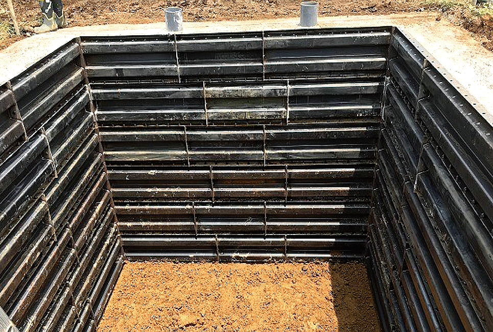 従来のライナープレートより断面剛性の高い、波形鋼板(Jプランクプレート)の開発により、補強部材不要を実現した新型立坑。