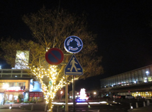 ラウンドアバウトの安全対策製品。新たに制定された規制標識に太陽電池の機能を追加した自発光式規制...