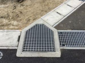 道路側溝との接続箇所に使用されるプレキャスト集水桝。二次製品側溝に合わせた製品幅で、すっきり接...