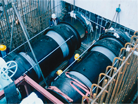 2.曲げ角度・偏心量が大きくとれる。また曲げや偏心が生じてもタイ・フレックス本体にはゴム継手のようなストレスは発生しない。