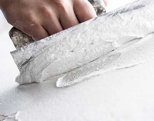 ■漆喰は原材料が無機物であるため火気に強く、高い防火性能を有し燃えることがない。