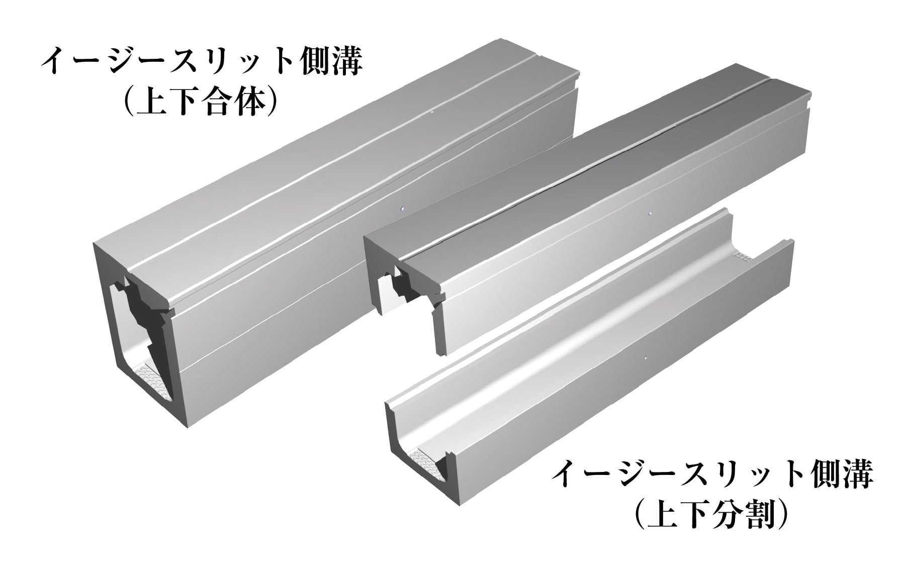 通常の自由勾配側溝と違い、製品には底版があるため、基礎コンクリートが不要になる。