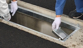 ハイテン鋼製の鋼製排水溝。通水断面が広く省スペースでも高い排水能力を発揮する。