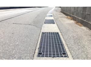 グレーチング構造を活用した、側溝を暗渠化するための埋設蓋。梁にハイテン鋼を使用しており蓋が薄く...