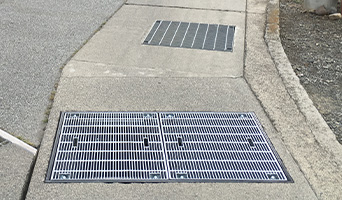 受枠の打設工事せずに後付けでボルト固定できる自由勾配側溝用グレーチング。