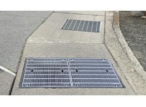 道路側溝や集水桝用の鋼製(こうせい)格子蓋。...